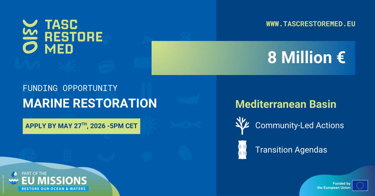 An additional €1 million dedicated to Transition Agendas for sustainable marine and coastal governance. TASC-RestoreMed, a flagship initiative under the EU Mission “Restore Our Ocean and Waters by 2030”, announces...