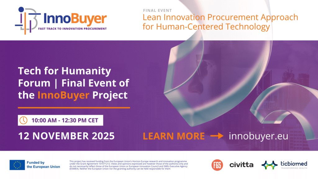 The InnoBuyer project, supported by the European Innovation Council’s Innovation Procurement Programme, announces its final event: Tech for Humanity Forum – Lean Demand-Driven Innovation for Human-Centered Technology, to be held online on 12 November 2025, from 10:00 to 12:30 CET. The event will highlight the results of InnoBuyer’s lean innovation procurement approach, showcasing successful SME […]