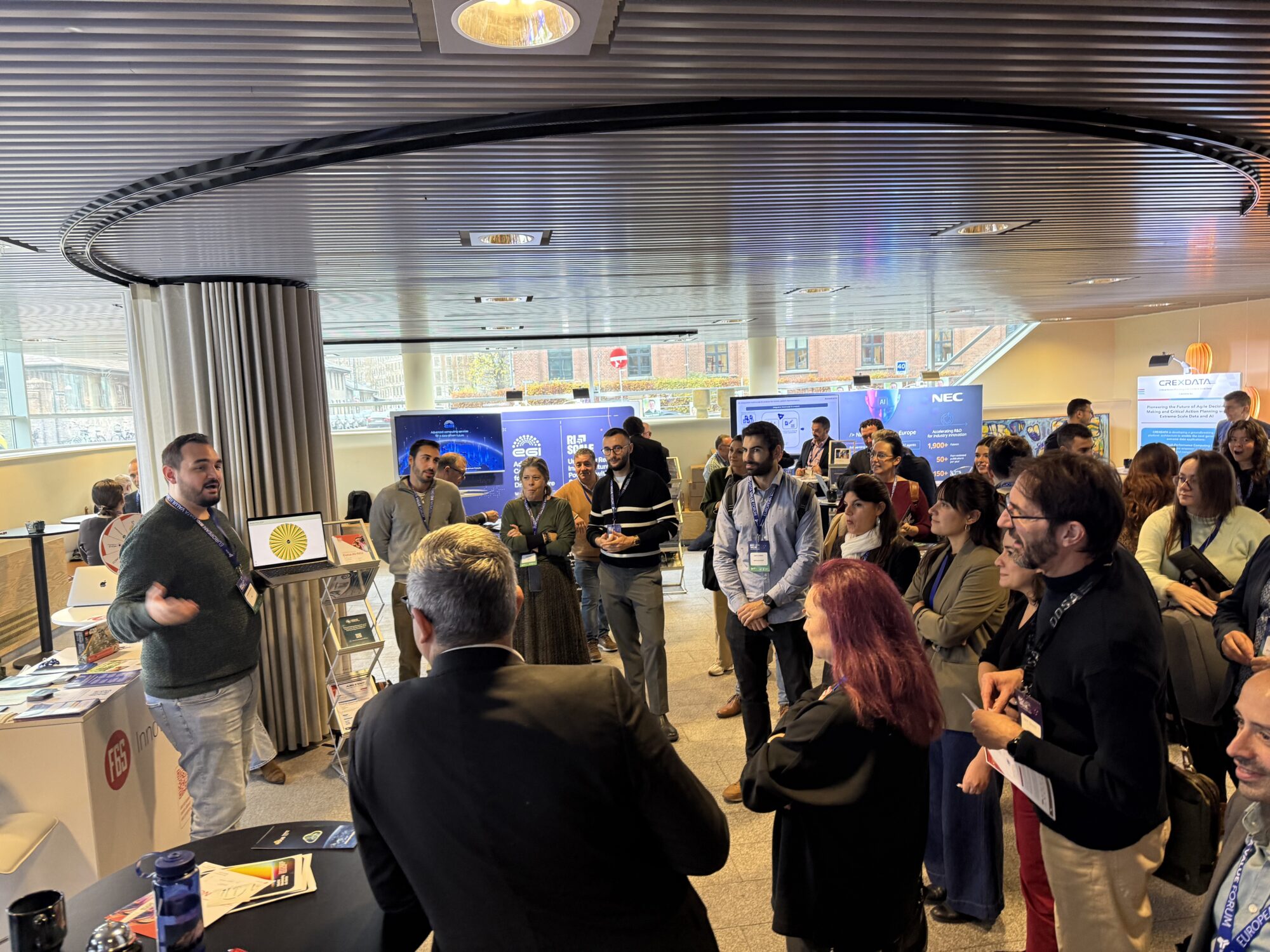 As an active BDVA (Big Data Value Association) member, the return to EBDVF was made with a strong presence: a dedicated booth, a cross-project delegation, and a packed schedule of ecosystem engagement. The booth became a focal point for meaningful conversations, attracting researchers, policymakers, SMEs, corporates, industry leaders, and innovation actors from all corners of Europe.